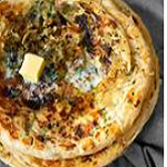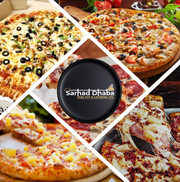 Red Tomato Sauce, White Sauce, Roasted Garlic, Ginger, Onions, Achari Paneer, Mozzarella Cheese, Pineapple, Corn, Pesto Sauce.