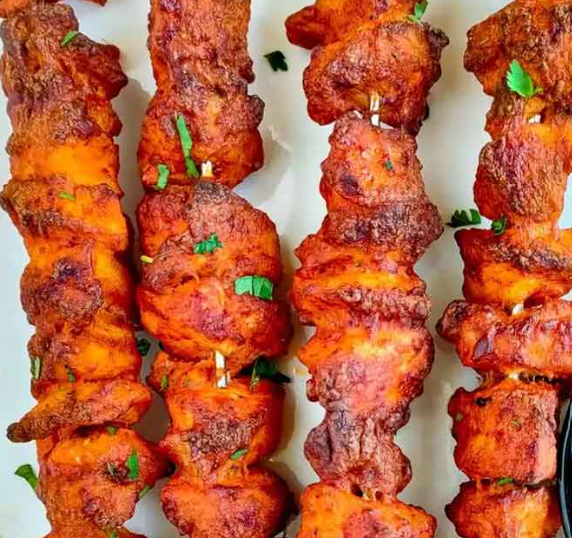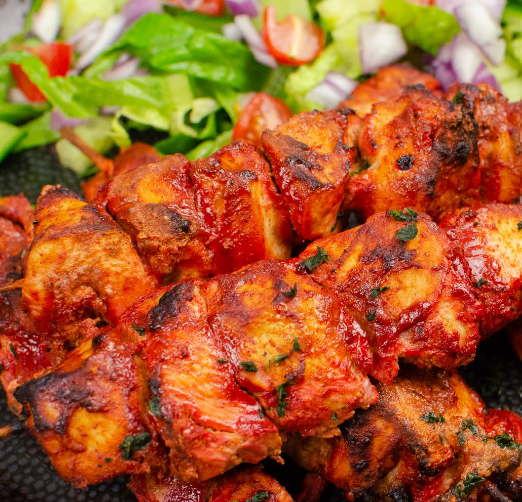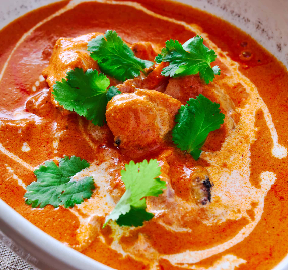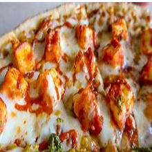 Red Tomato Sauce, Ginger, Onions, Green Peppers, Tomatoes, Marinated Tandoori Chicken Marinated with Butter Sauce, Mozzarella Cheese.
