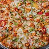 Red Tomato Sauce, Ginger, Onions, Green Peppers, Olives, Pineapple, Tomatoes, Marinated Achari Paneer & Mozzarella Cheese